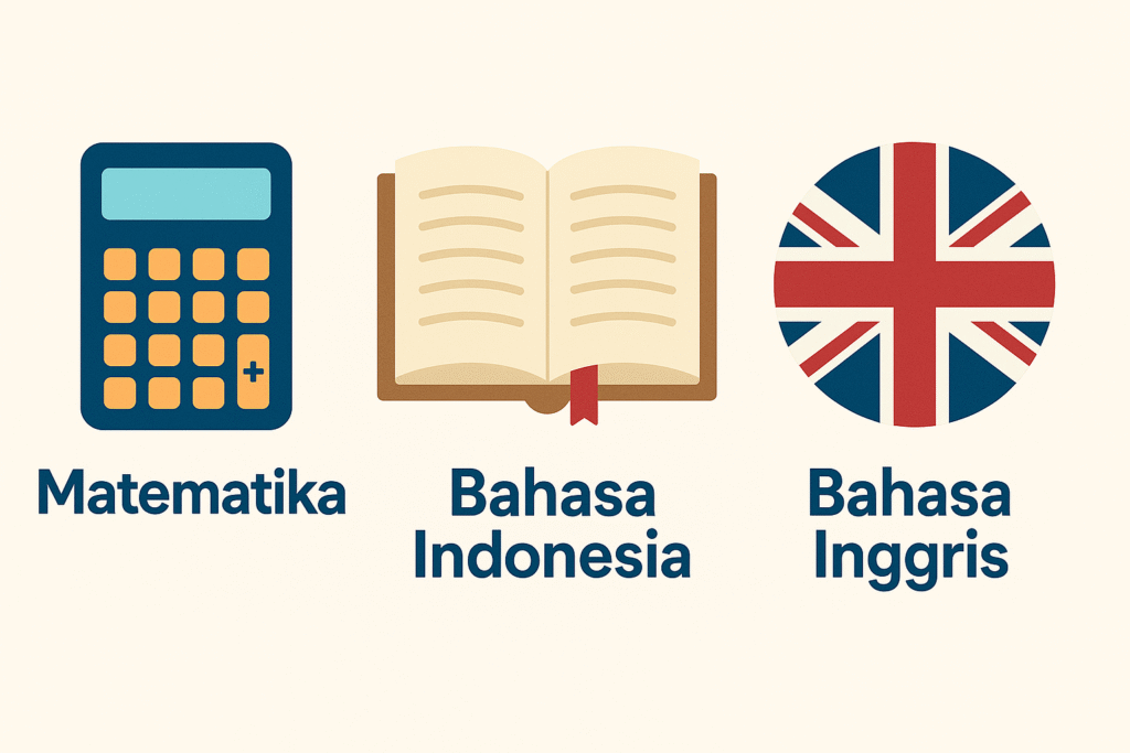 Matematika, Bahasa Indonesia, dan Bahasa Inggris.
